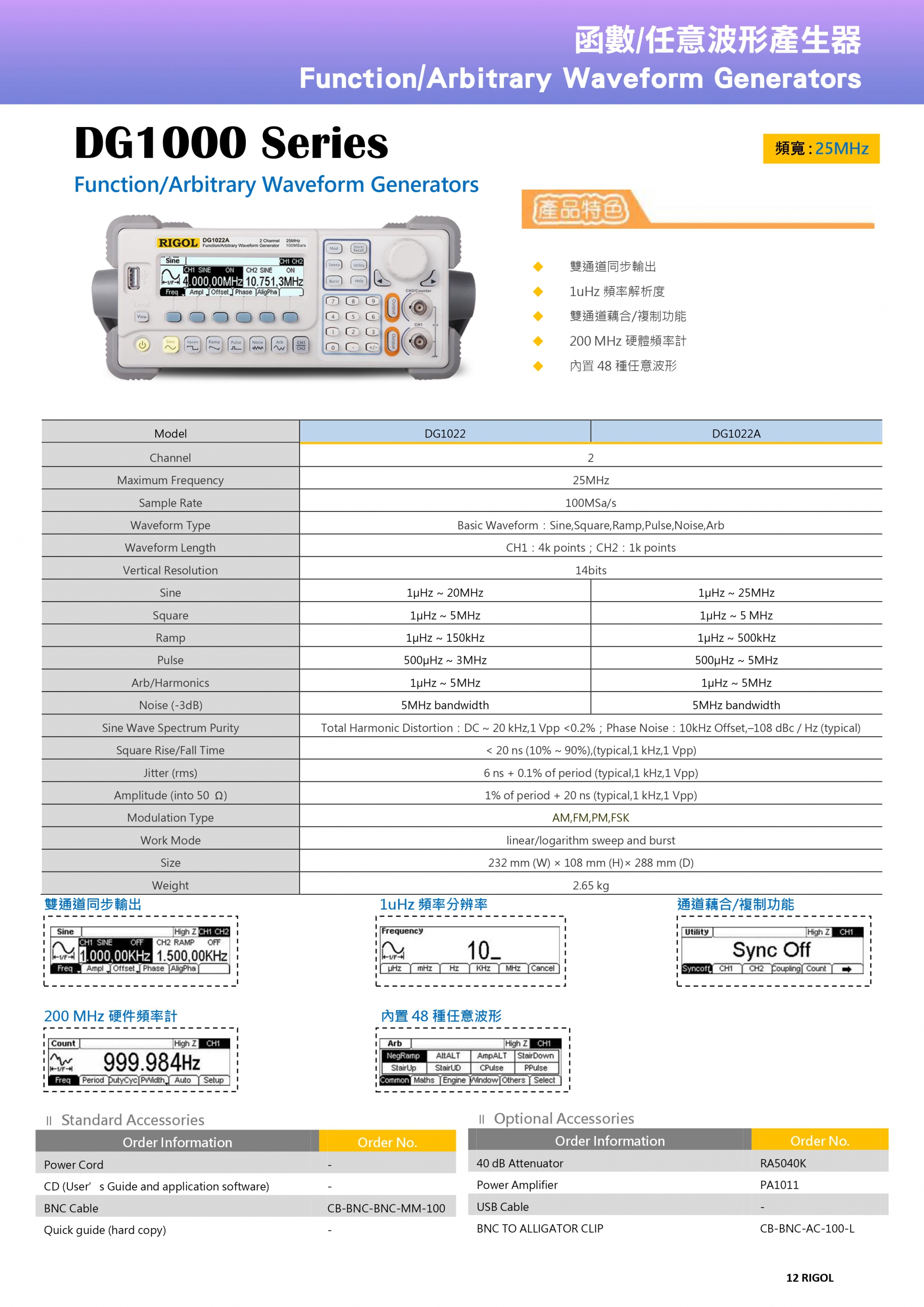 • 內置高精度、寬頻帶頻率計,可測量範圍:100 mHz ~ 200 MHz(單通道)