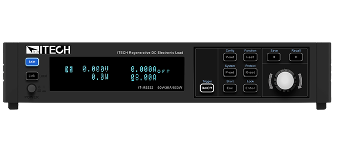 IT-M3300利用電力電子變換技術在完成測試功率實驗的前提下,将被測電源的輸出能量循環再生利用。通過内部高速電壓、電流的采樣,用戶可以在儀器面闆中直接查看當前回饋總電量。