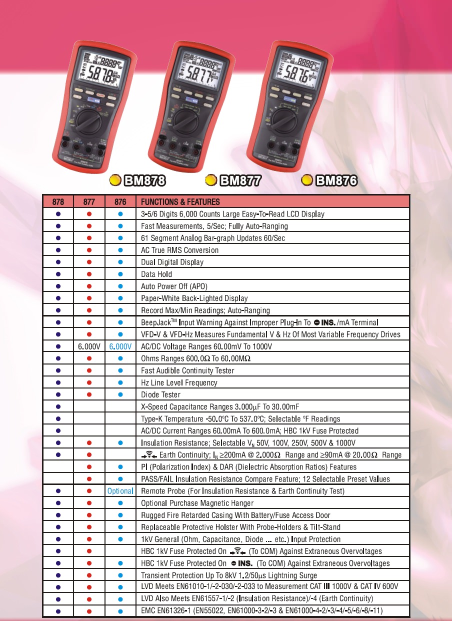 - Compare Feature PASS / FAIL ─ 可選擇的12組預設阻抗值,使重覆性的測試更為便利...(only BM878)
