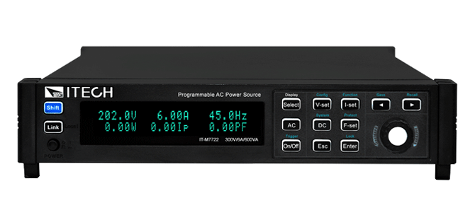| IT-M7722E | 300V | 10A | 1000VA | 0.1V/0.1mA | ±(0.25%×VAC + 0.25%×F.S.) | 選配RS232/CAN/LAN/ GPIB/USB/外部類比介面 | 1/2 2U |
