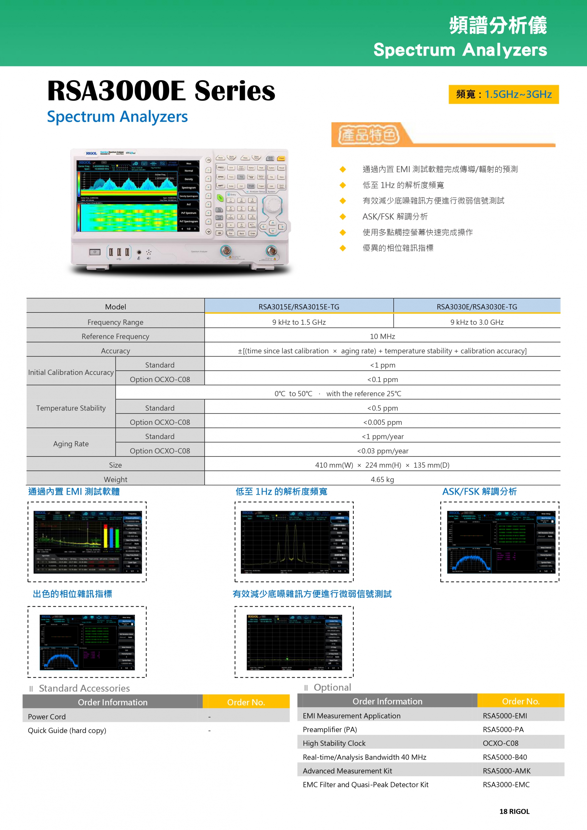 • 可選購前置放大器 (100kHz~ 3GHz , 20dB)