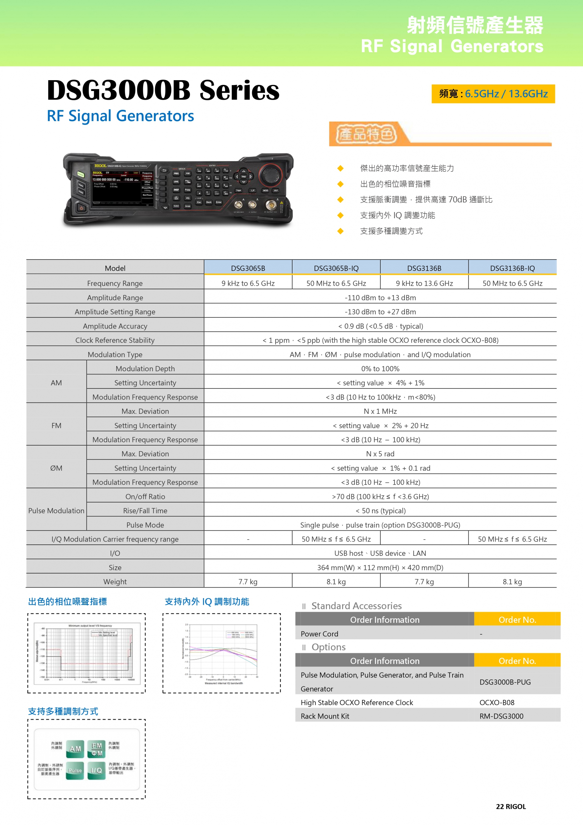提供DSG3065B-IQ型號,支援I/Q 調變輸入功能