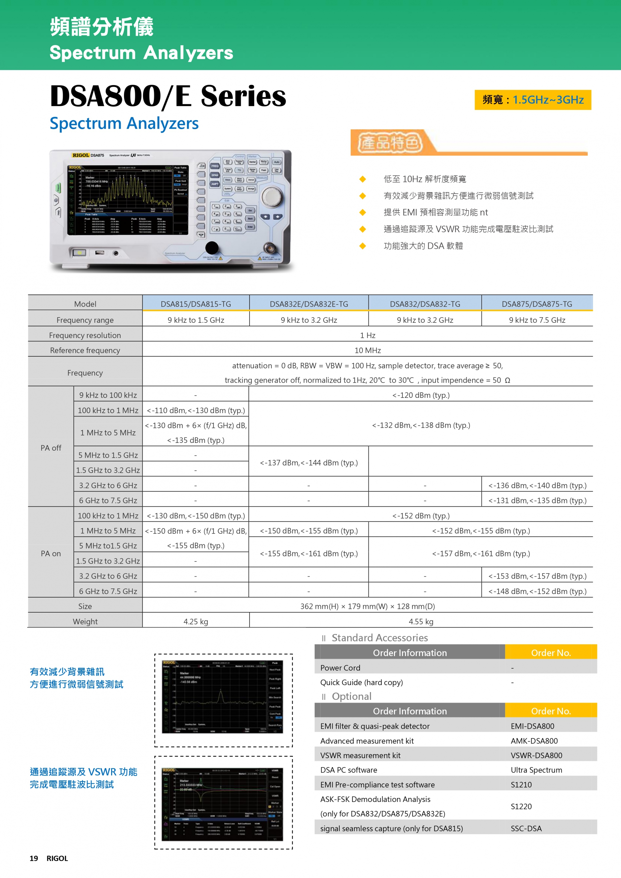 • 可選配EMI率波器(EMI Filter)和準峰值檢波器(Quasi-Peak Detector Kit)