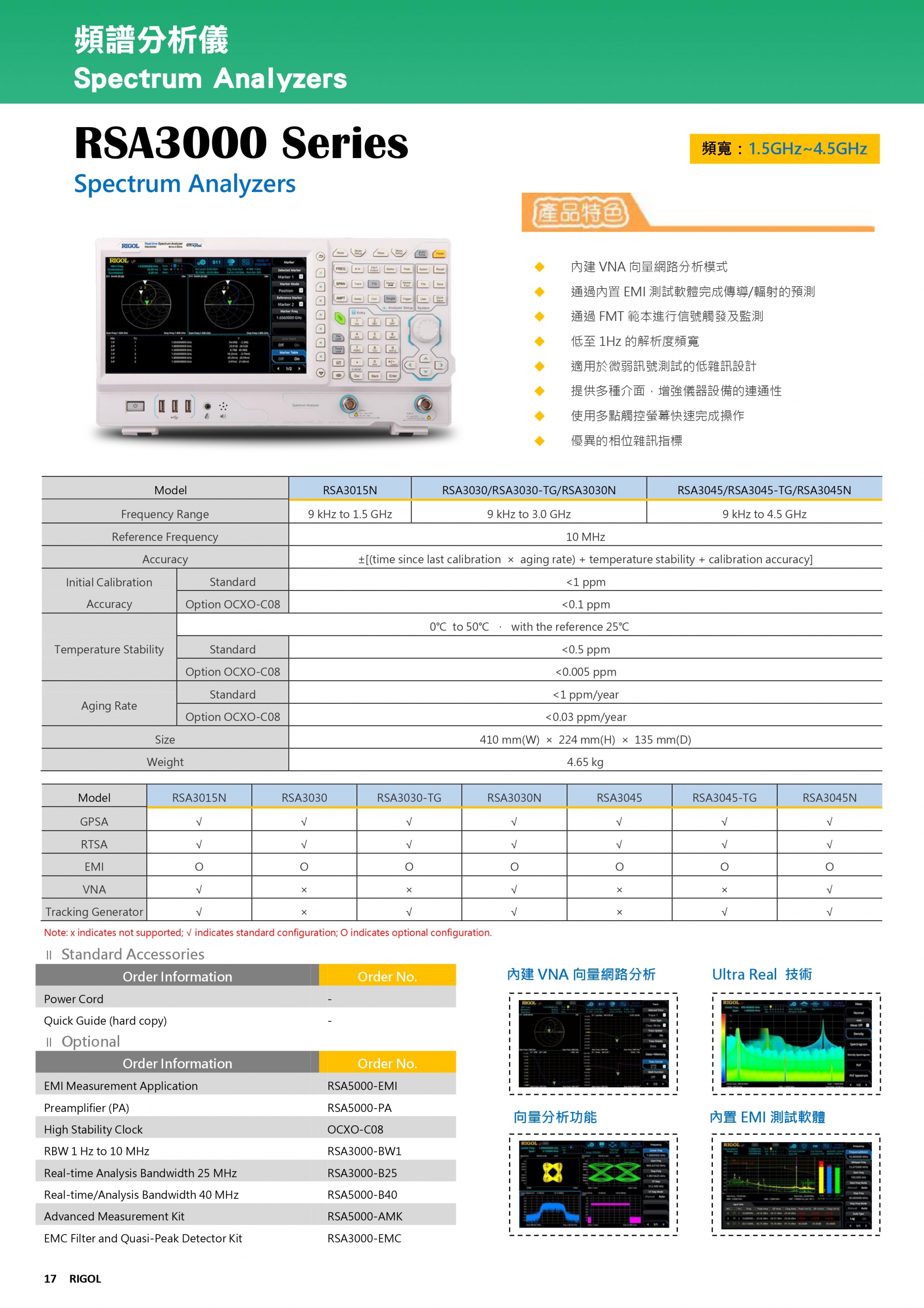 • 可選購前置放大器 (100kHz~ 4.5GHz, 20dB)