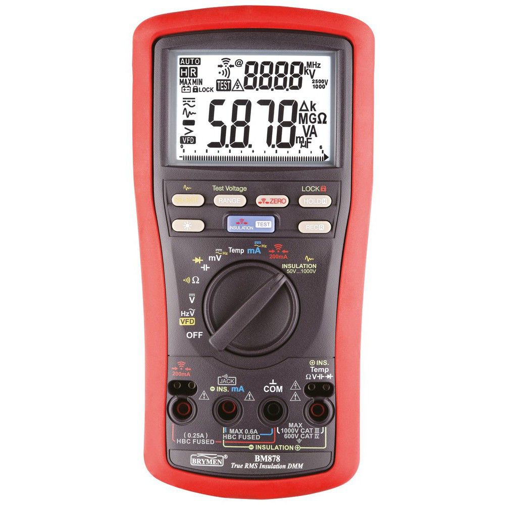 - 5 種可選擇的絕緣阻抗測試電壓(50V、100V、250V、500V、1000V)
